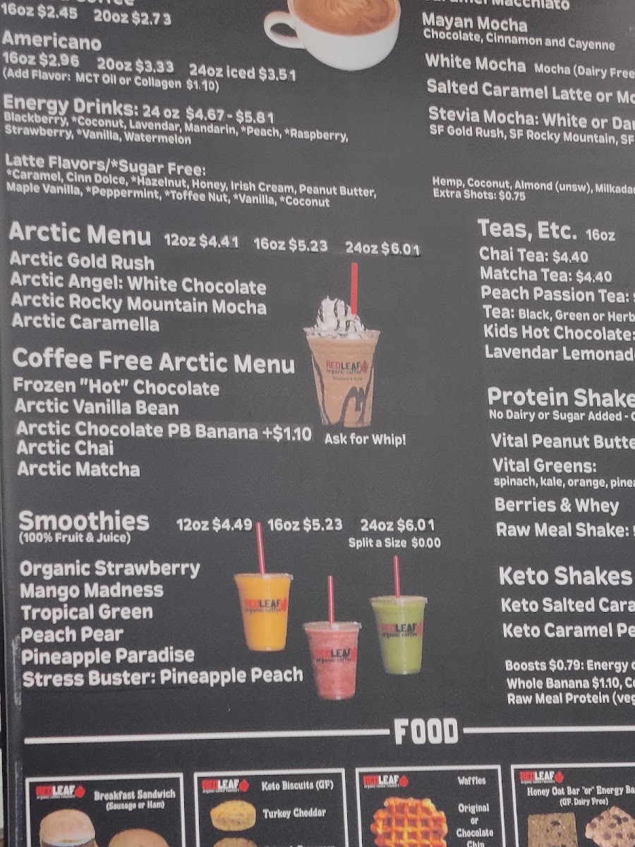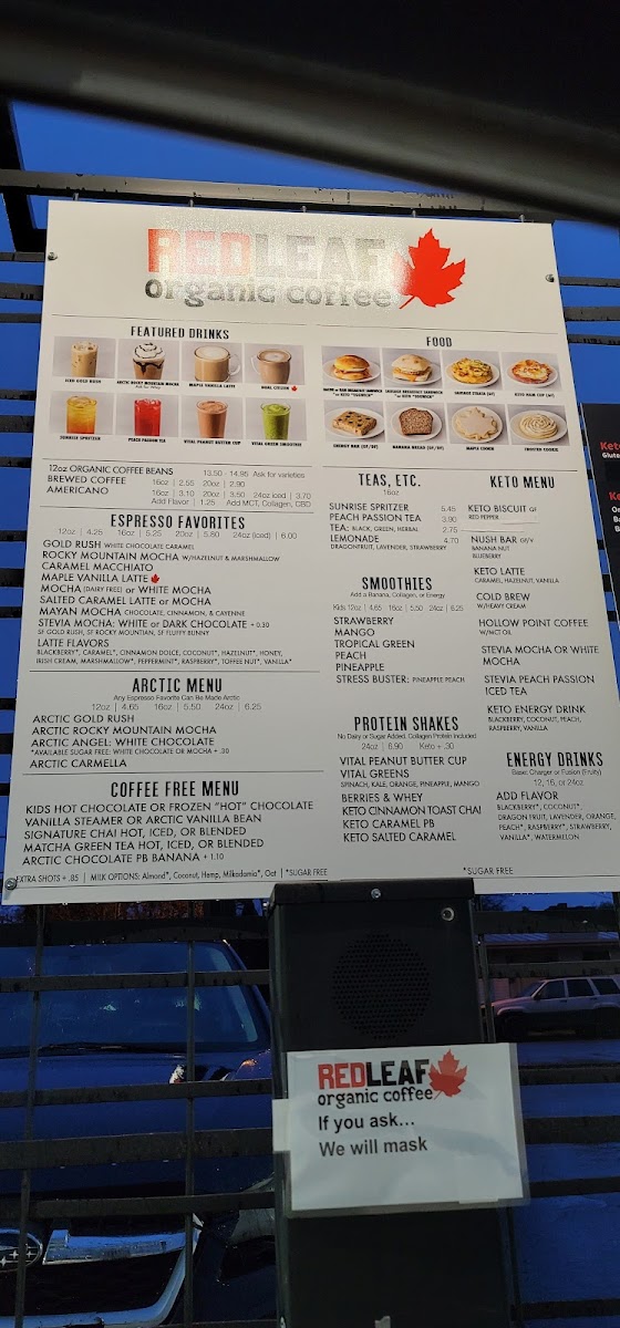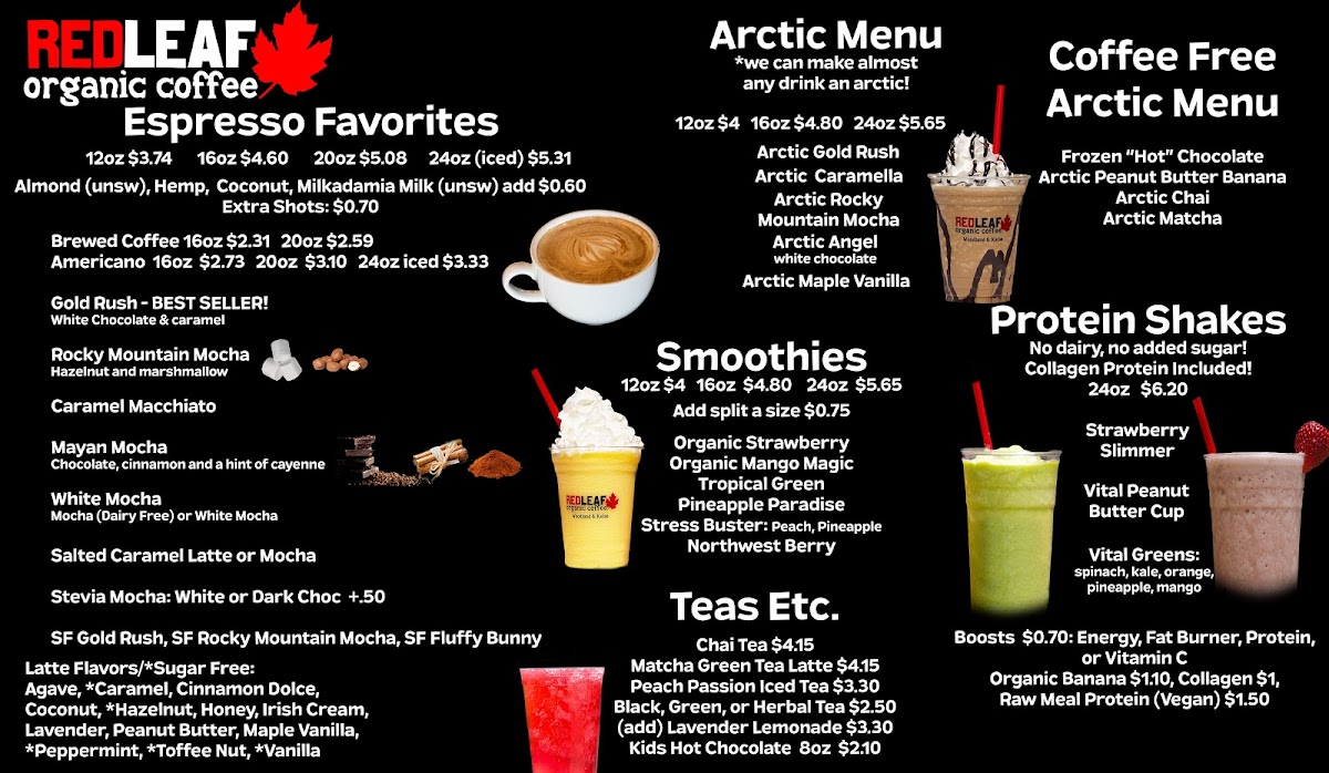 Red Leaf Organic Coffee Drive Thru Woodland, WA Menu